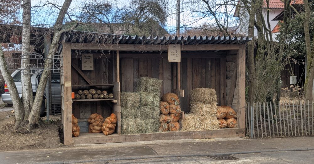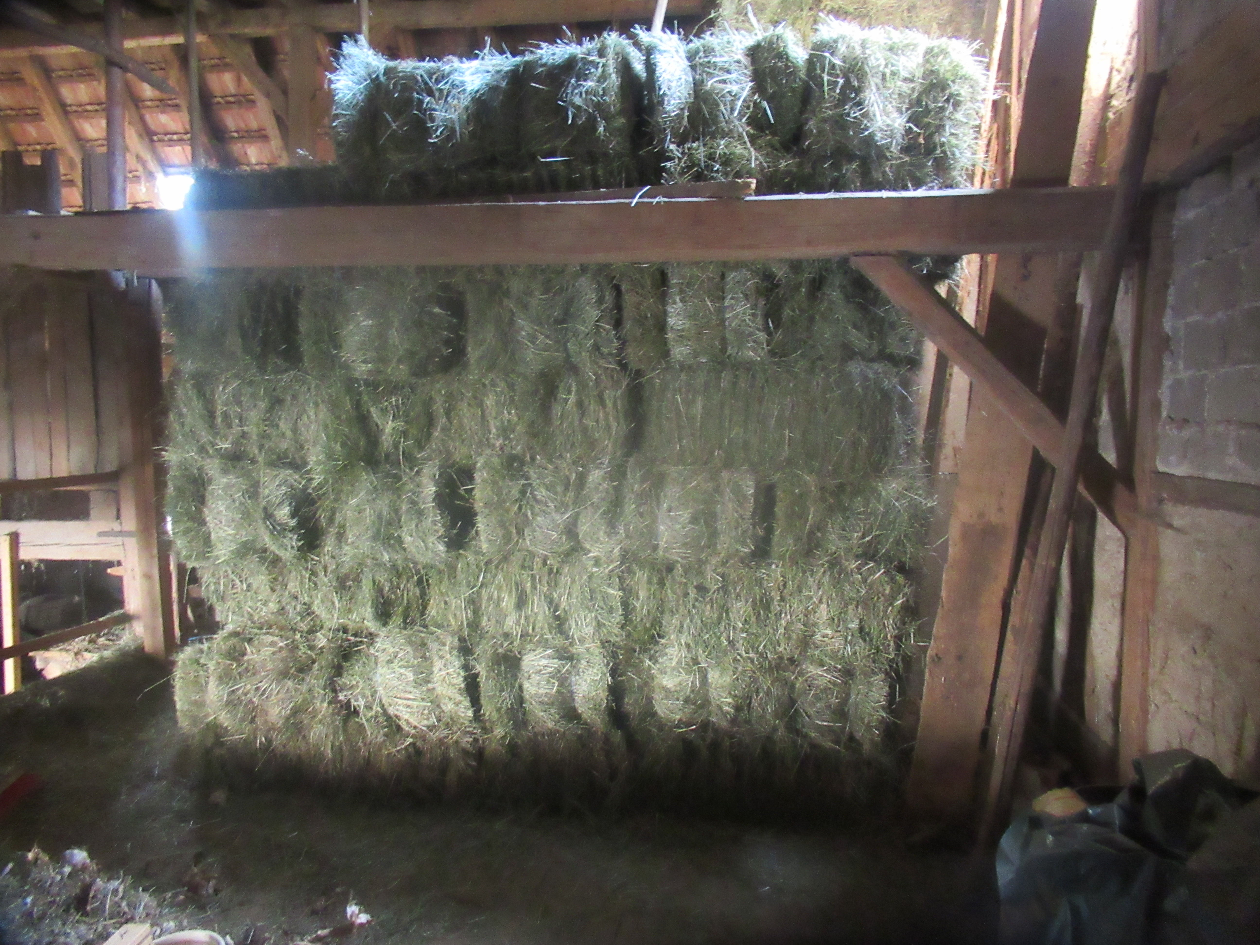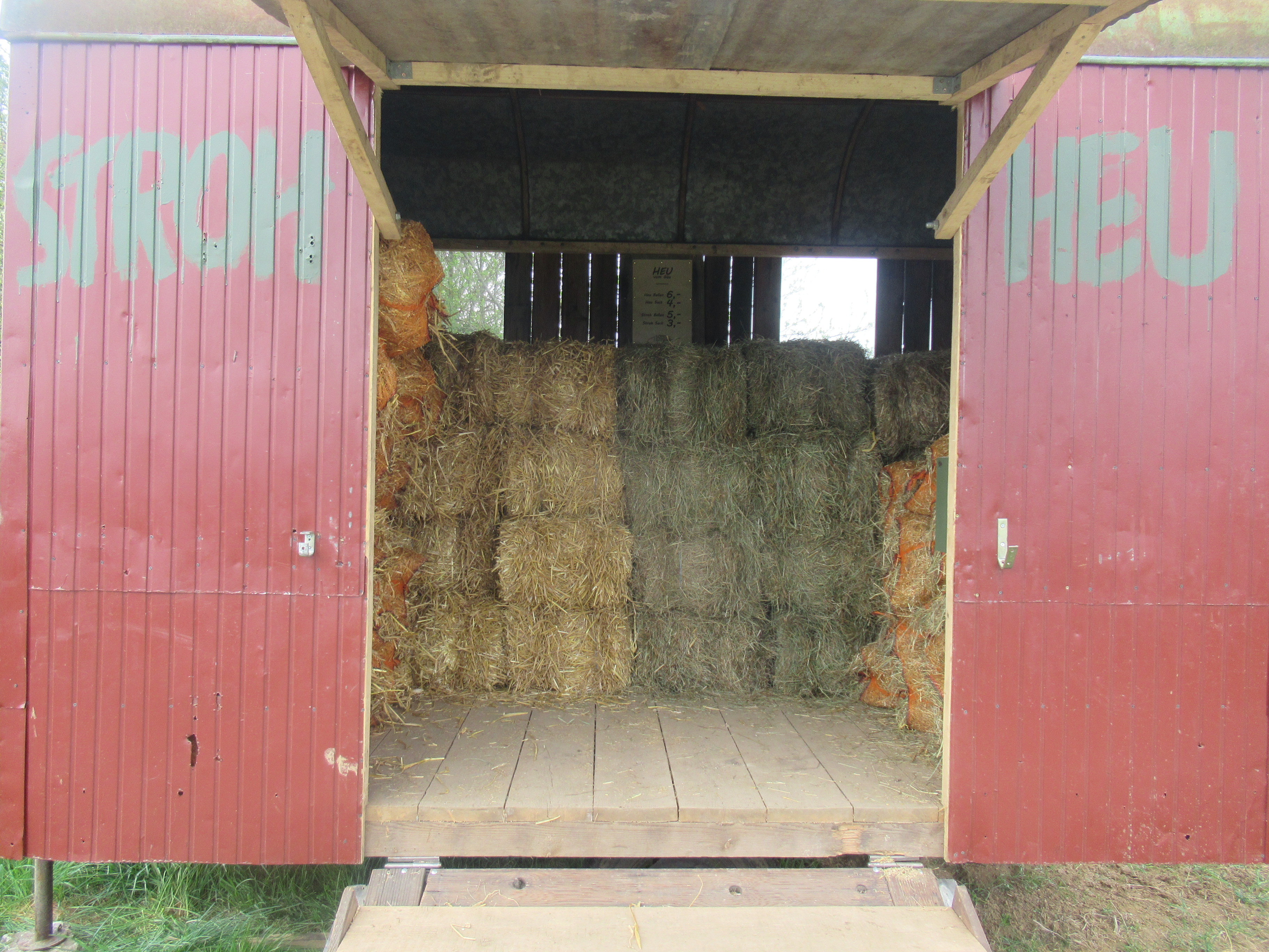 Unser Heu stammt aus Obststückle und Wiesen vom Gäu. Sie können es bei uns im Praktischen Raschelsack oder im Ballen gepresst kaufen.