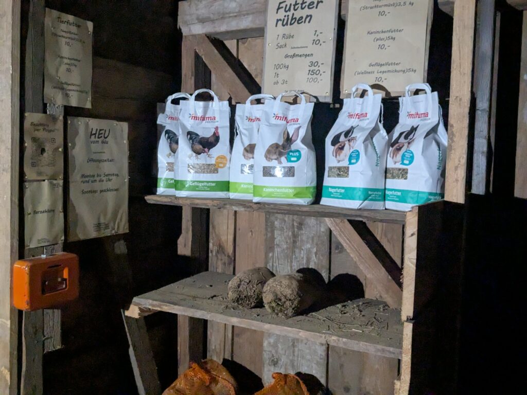 In unserem SB-Stand in Bondorf können sie mittlerweile auch Trockenfutter für ihre Tiere kaufen. Abgepackt in handliche Säcke können sie Montag bis Samstag jederzeit vorbeikommen und einkaufen.