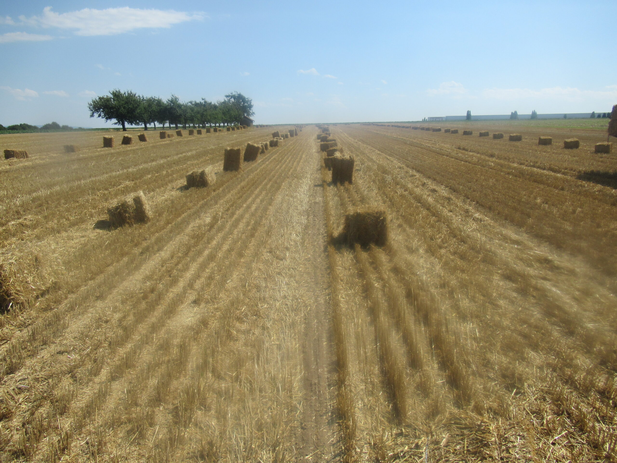 Im Sommer kann nach der Getreideernte Stroh gepresst werden. Das Stroh wird bei uns mit der Kleinballenpresse gepresst. Mit viel Handarbeit werden die Stroh-Ballen eingesammelt und eingelagert.
